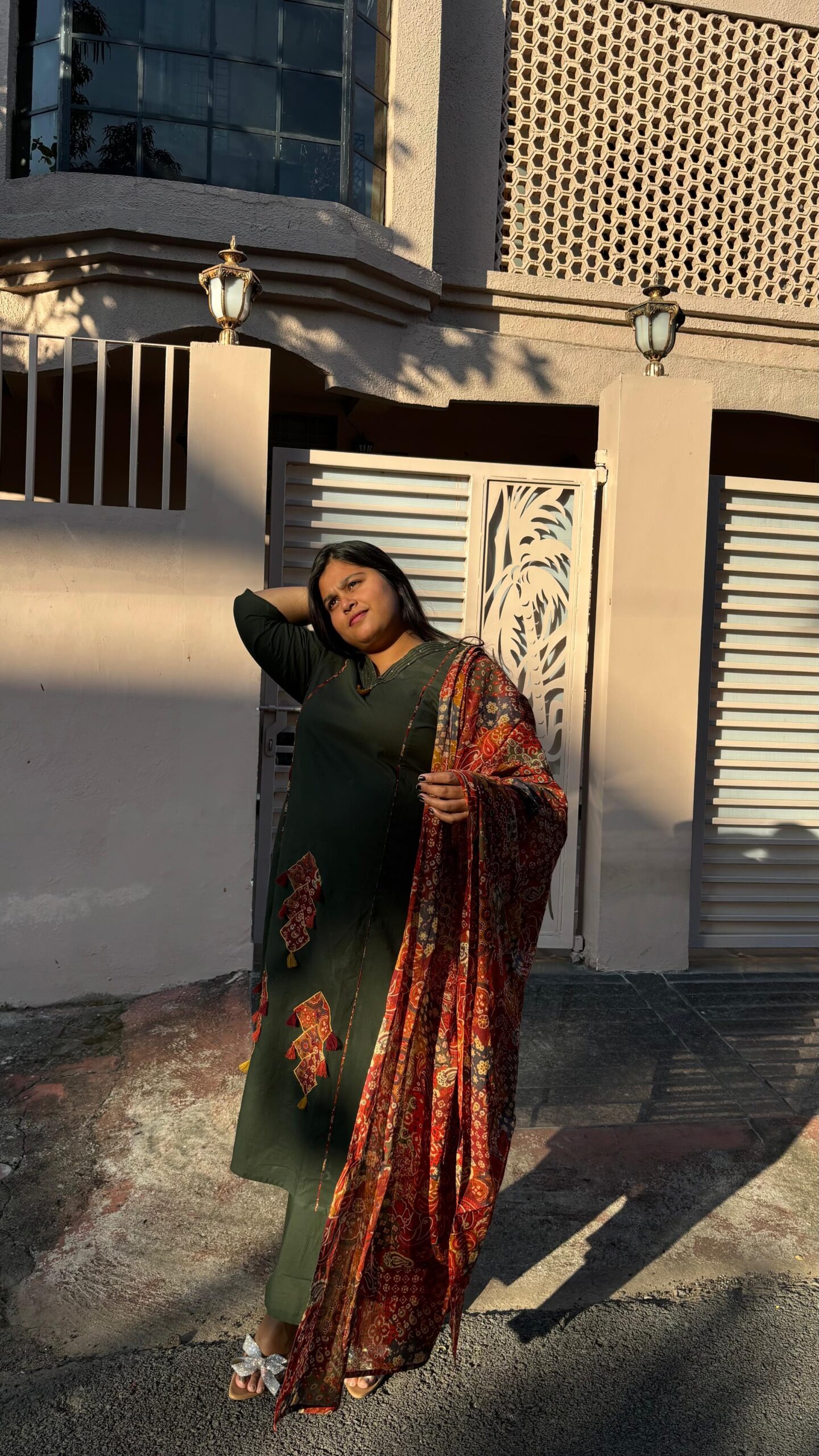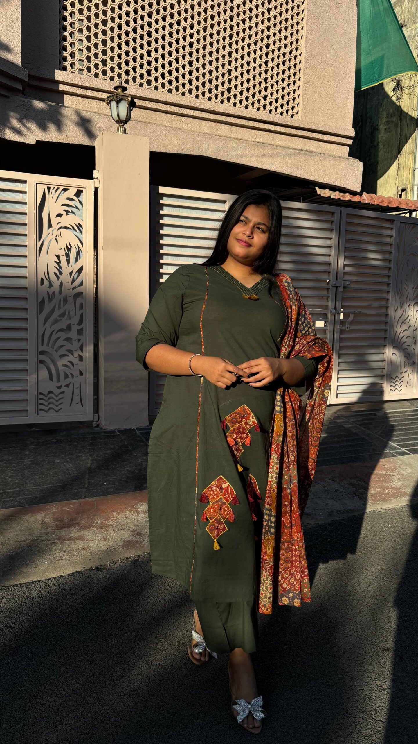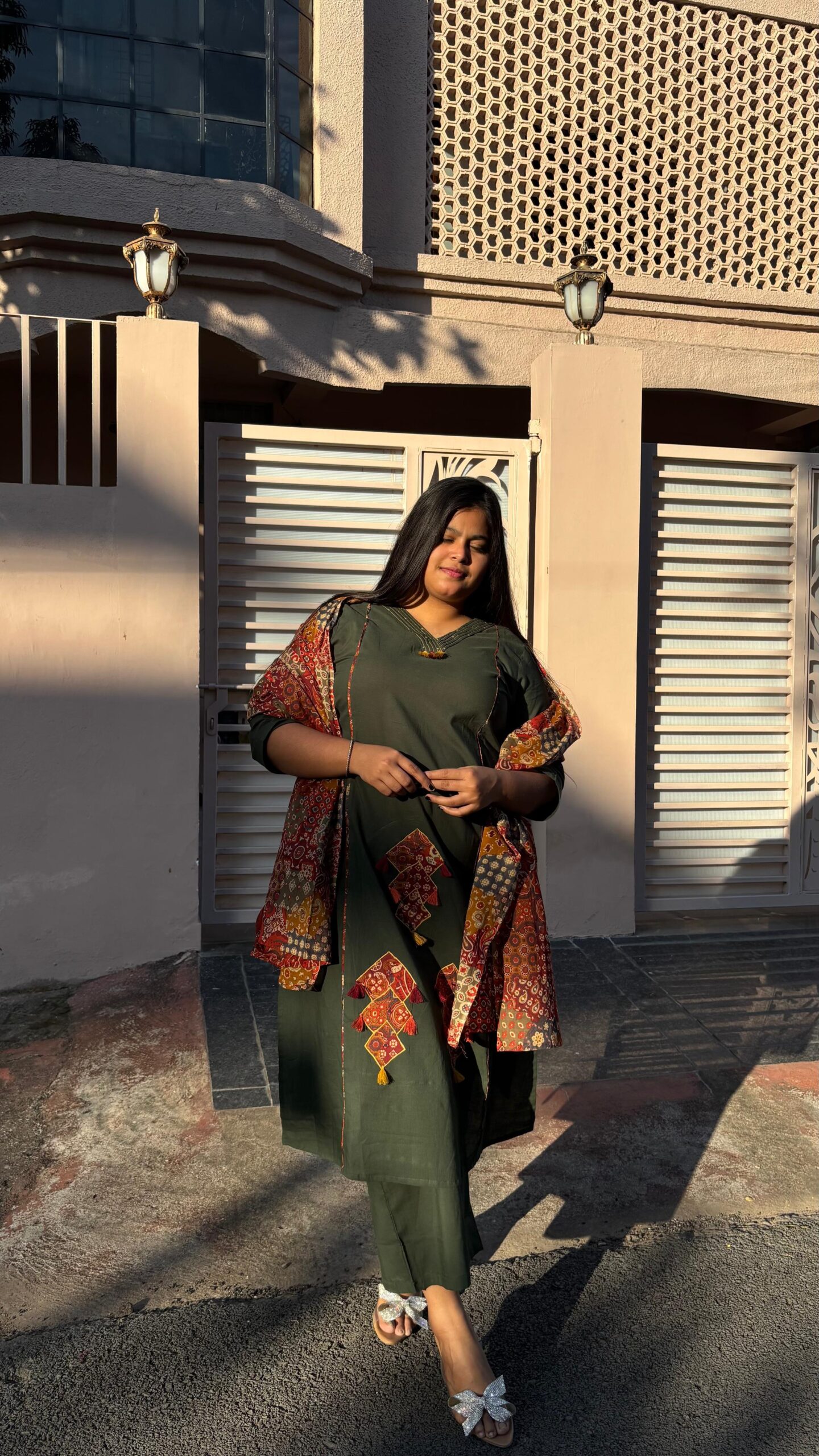Pair it with oxidised earrings, soft makeup, and traditional footwear for an elegant festive look.