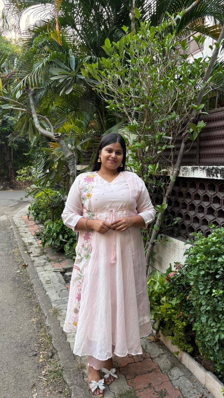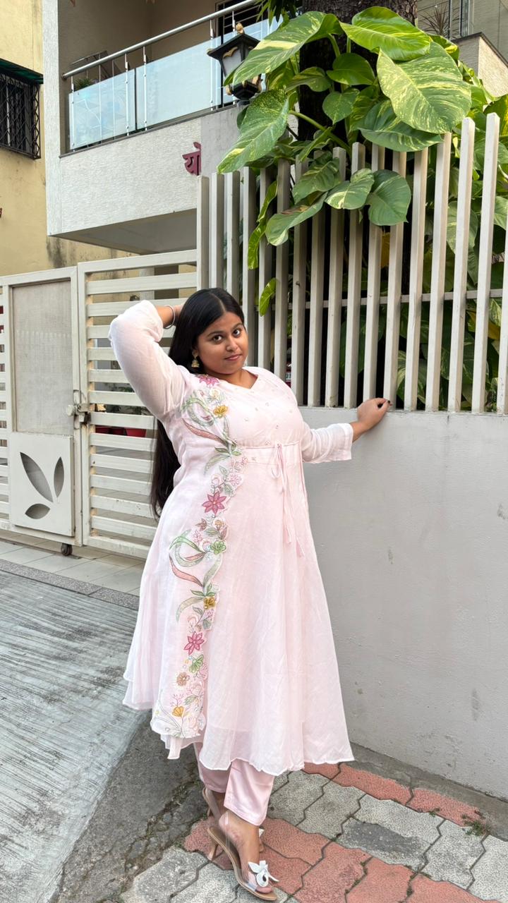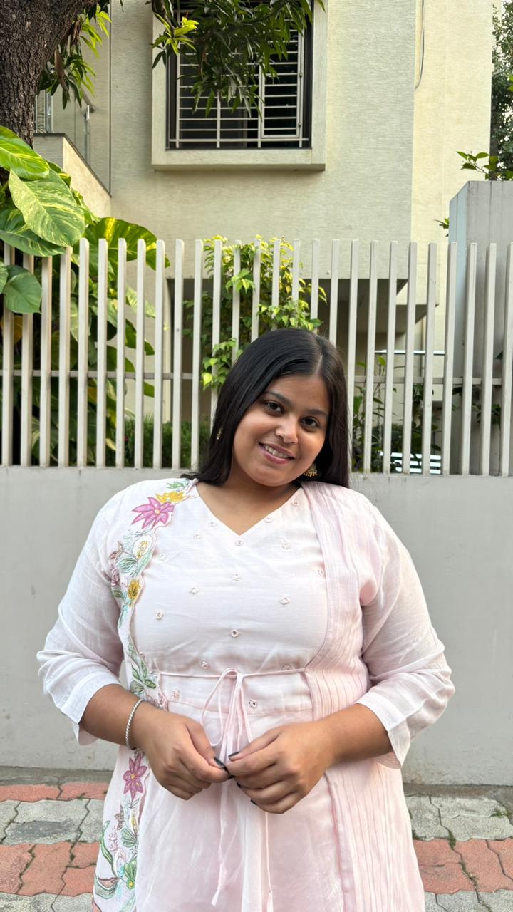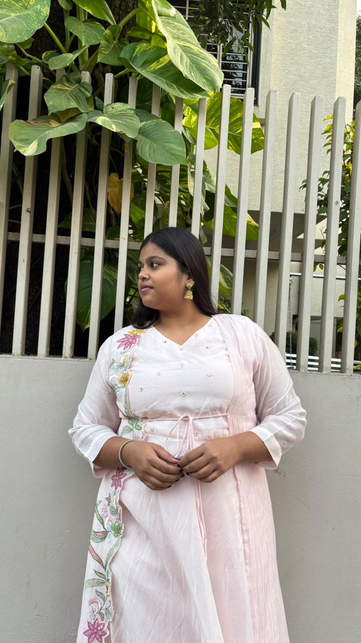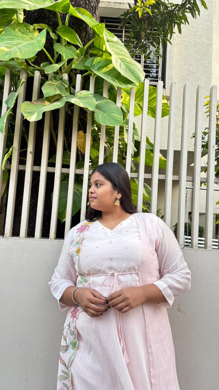 Exude effortless elegance with the SUKOON Pastel Embroidered Three-Piece Suit Set, thoughtfully designed for refined ethnic styling. This ensemble features a flowy inner kurta layered with a delicately embroidered jacket that adds depth and graceful structure to the look. The floral embroidery running along the jacket brings a soft festive charm, while the matching straight pants complete the ensemble with balance and comfort.