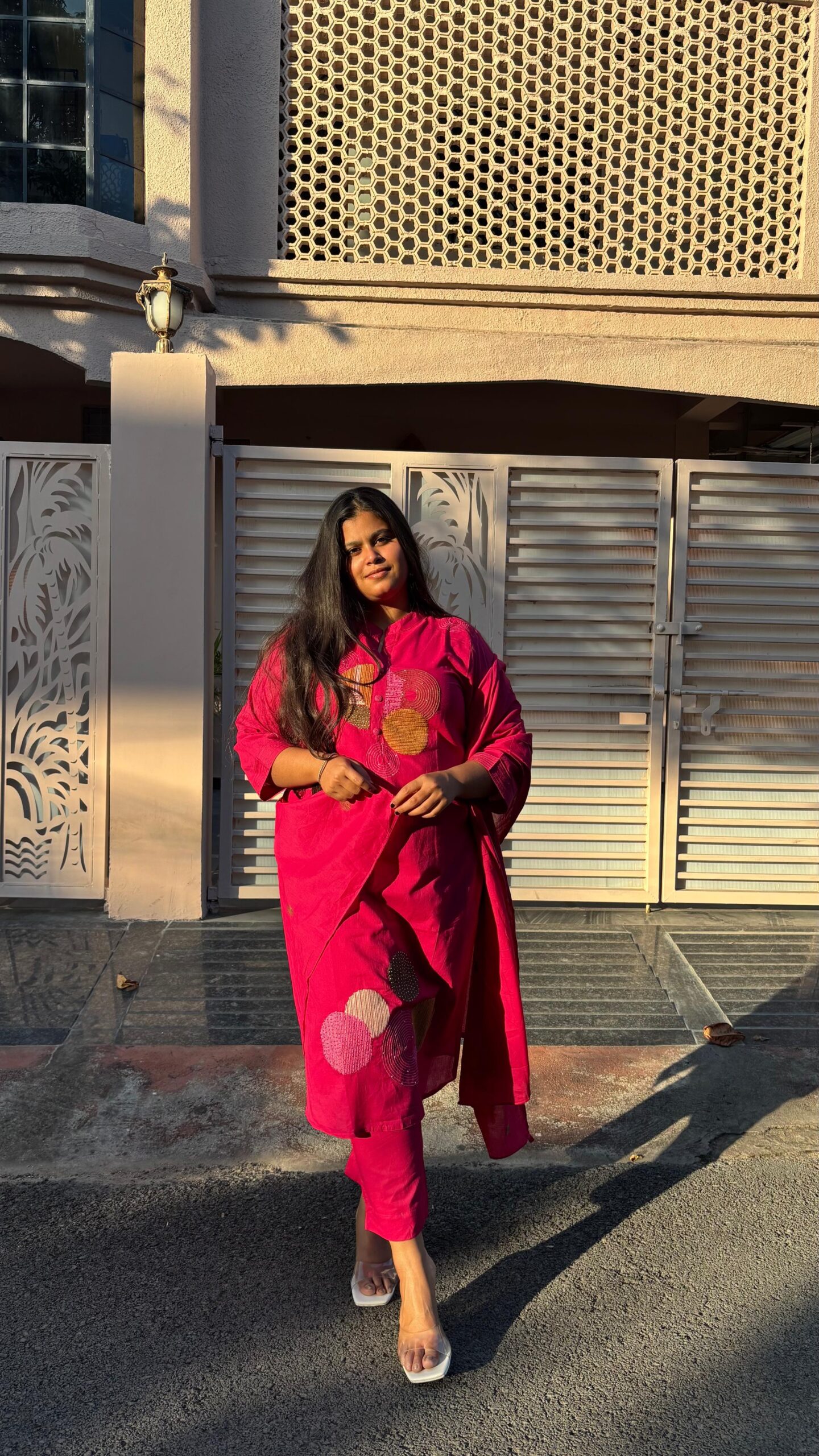 Make a statement with the Abeer Pink Embroidered Suit Set, designed for women who love bold elegance. Rendered in a rich pink hue, this suit features striking circular embroidery that adds a modern artistic touch to its traditional silhouette. Crafted for comfort and grace, the straight-fit kurta is paired with a matching dupatta, making it perfect for festive occasions, celebrations, and evening gatherings. Effortlessly stylish, this ensemble blends contemporary design with timeless ethnic charm.