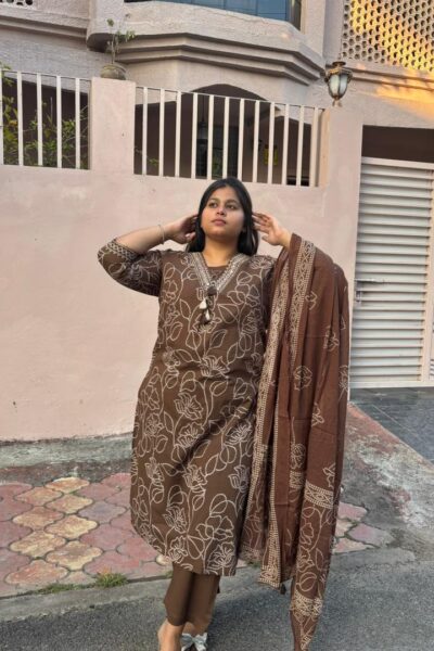 ₹1,995.00KIFAYAT Embroidered Brown Suit Set