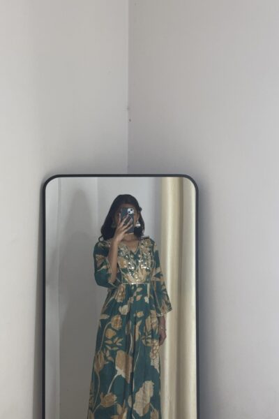 ₹1,995.00Inaaya Teal Green Floral Printed Anarkali Kurta with Palazzo Pants